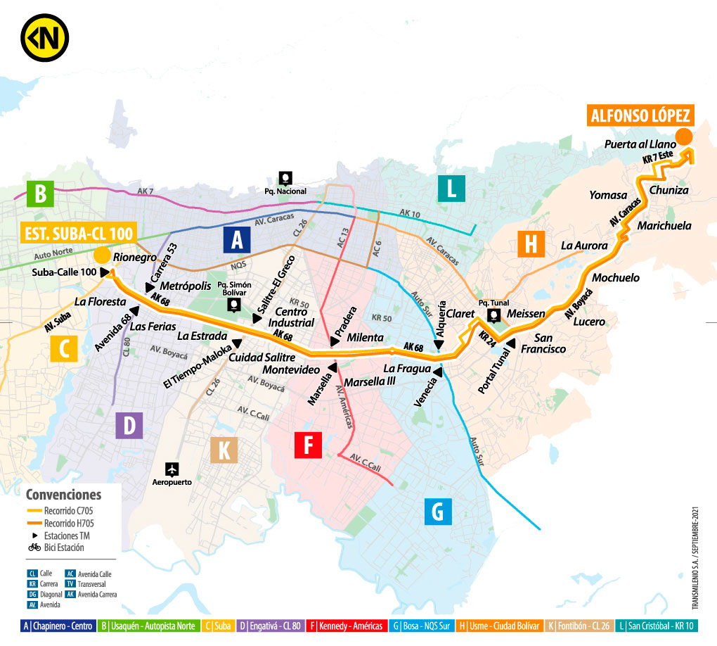 Volver a SITP Ruta C705 | Estación Suba -calle 100