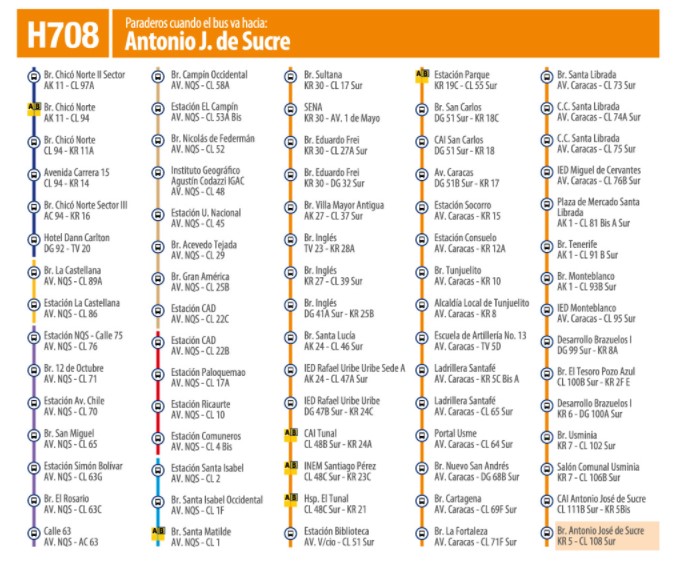 Volver a SITP Ruta H708 | Antonio Jose de Sucre